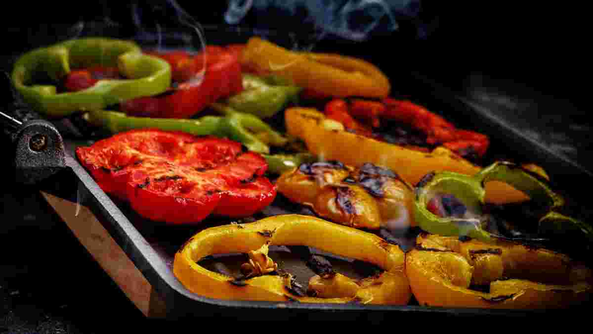 Літо провокує на готування їжі на природі. Проте не все впирається в м’ясо. Овочі теж виходять дуже смачними. Ми даємо базовий набір, можна також брати усі, які смакують. Наприклад, кукурудзу, фенхель, моркву, спаржу, порей (картоплю варто підварити) тощо. Готувати також такі овочі можна й на електричному грилі.