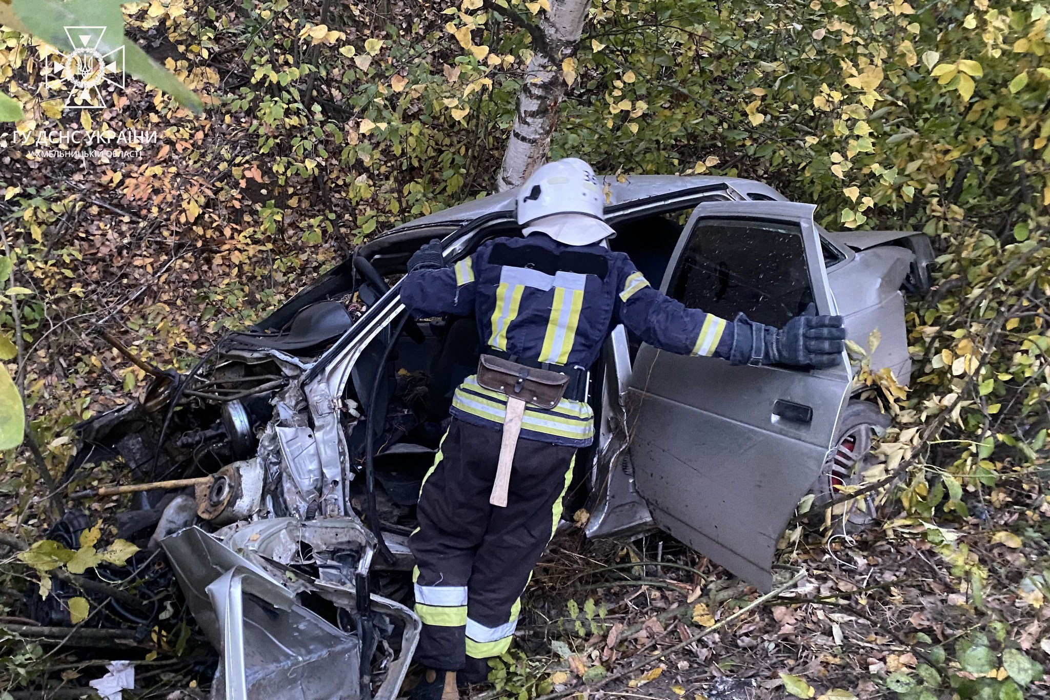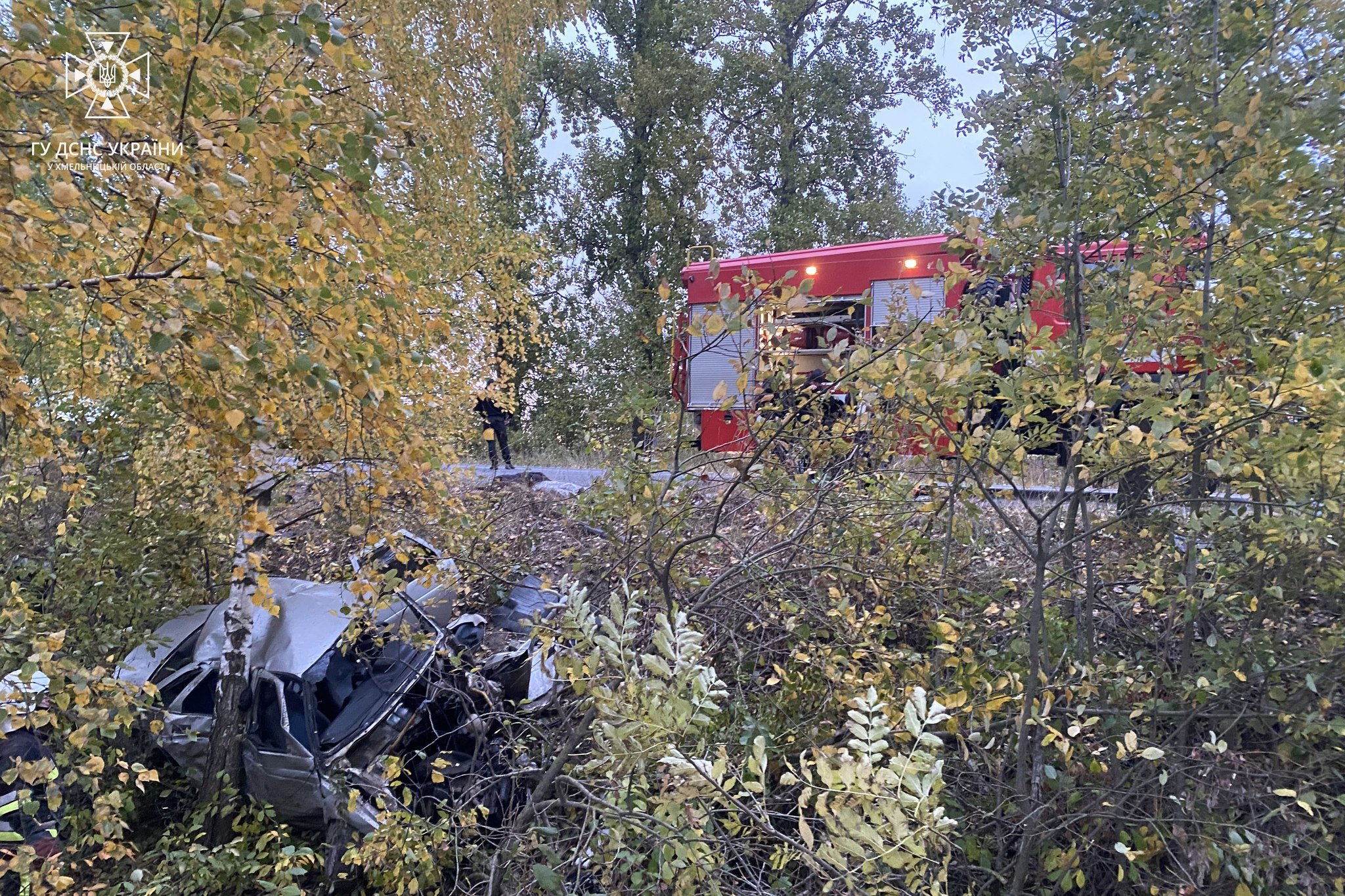 Як повідомила прес-служба ДСНС Хмельниччини, аварія сталась близько 07:00 у вівторок, 17 жовтня, поблизу села Підліски Теофіпольської громади (це орієнтовно за 5 км від Теофіполя). На фотографіях з місця ДТП видно, що автомобіль ВАЗ-2110 з’їхав з проїзної частини у придорожні чагарники.