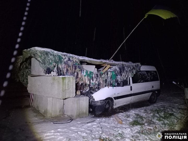 «25-річний водій автомобіля Citroën Jumpy не врахував стан дорожнього покриття, не вибрав безпечної швидкості руху, проігнорував встановлені обмежувальні знаки та допустив наїзд на бетонні блоки блокпоста», – повідомляють правоохоронці.