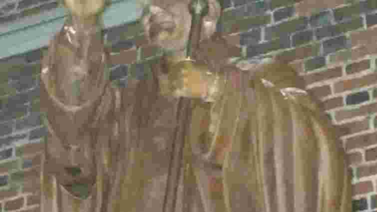 Чоловік у дивному вбранні відтяв палець пам’ятнику