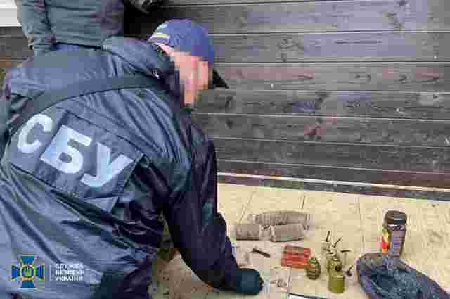 Як повідомили у прес-службі СБУ, зі схованки у чоловіка вилучили майже 2 кг пластиду, тротилові шашки та гранати. Схованка була облаштована у прибудинковій споруді приватного будинку.