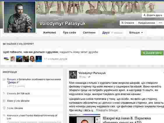 Кандидат у народні депутати України Володимир Парасюк, який активно займається збором коштів для бійців, що воюють у зоні АТО, на своїй сторінці у Facebook заявив, що з допомогою волонтерів викрив шахрая, який збирав кошти начебто для військових.