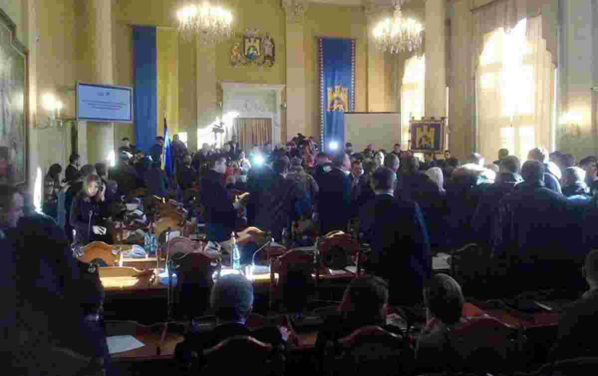 Кілька десятків активістів «Розвитку громади», УНСО, спортивного клубу «Легіон» та Цивільного корпусу «Азов» під час сесії ЛМР 22 грудня увірвалися до сесійної зали. Через це міський голова Андрій Садовий оголосив перерву в засіданні.
