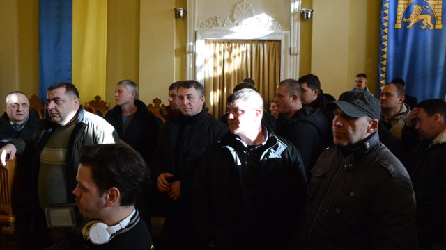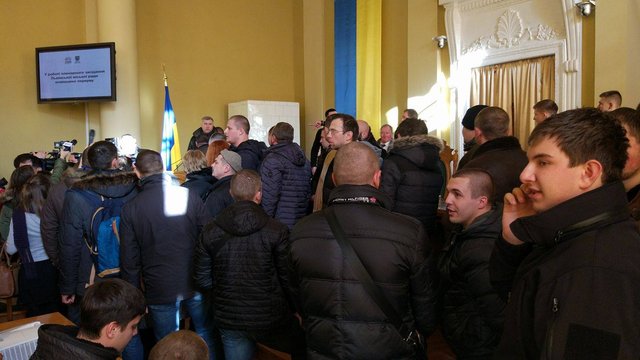Активісти, серед яких багато підлітків спортивної зовнішньості, зайшли до залу, вимагаючи розглянути під час засідання питання щодо заборони встановлення на території колишнього заводу «Львівхімсільмаш» будь-яких підприємств, чия робота пов'язана зі сміттям.
