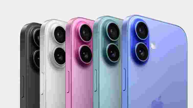 Нові моделі iPhone 16 доступні в синьому, зеленому, рожевому, білому та чорному кольорах.