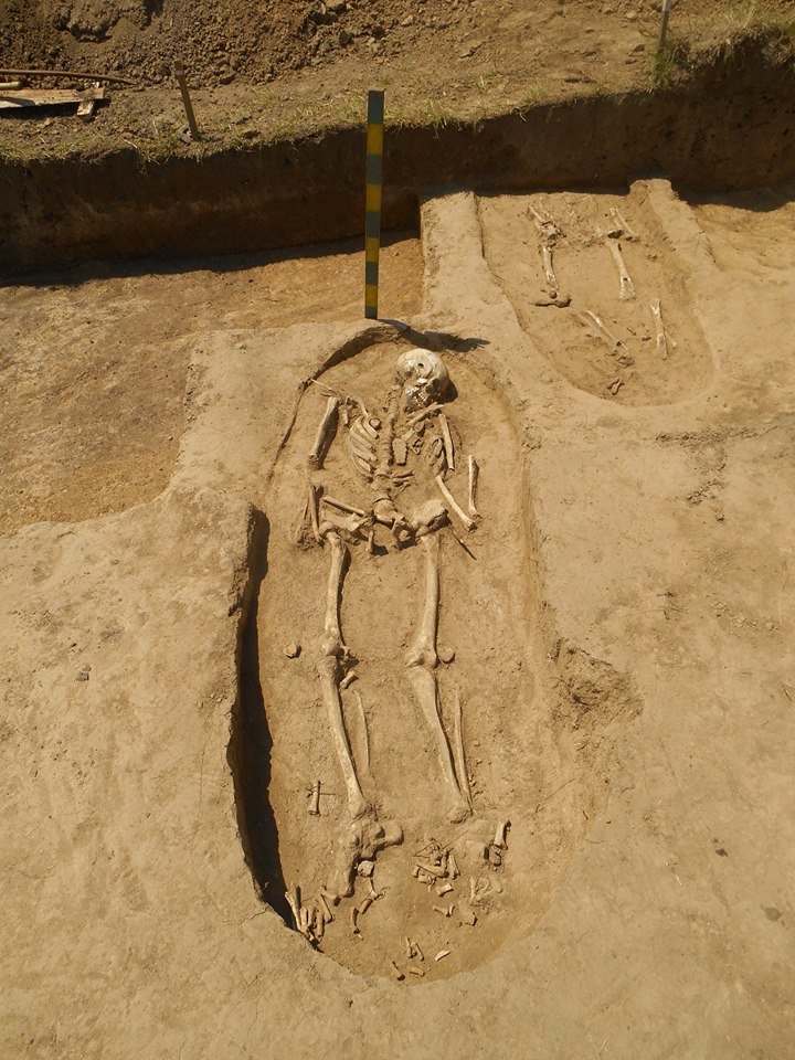 Останки людей поховані головою на захід, руки небіжчиків складені на грудях або ж на животі. Могили були доволі неглибокими від рівня тогочасної поверхні. В одному захороненні виявили перстень з бронзового дроту, ніж, а також рештки ще одного залізного знаряддя.