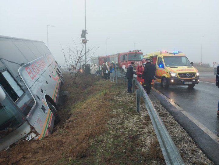 За інформацією угорського управління з надзвичайних ситуацій, автобус знесло з проїжджої частини на кільцевому перехресті траси 403 і 4102, він пробив огорожу, а потім впав на бік у кювет.