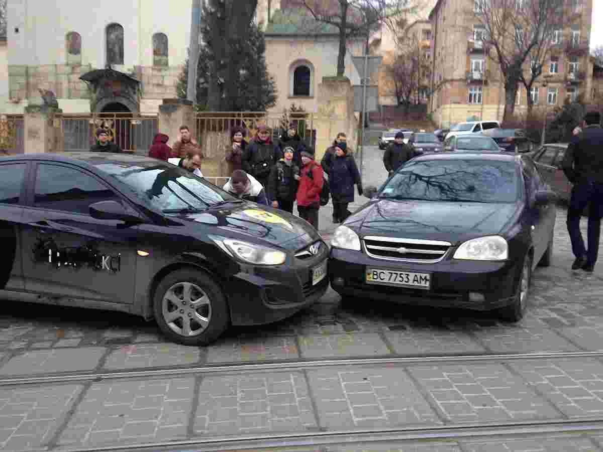 Сьогодні, 24 лютого, у Львові трапилася ДТП за участі автомобіля «Яндекс.Таксі». Близько 17:00 на вул. Б. Хмельницького, 29 зіткнулися автомобілі Chevrolet Lacetti та Hyundai Accent, який обслуговував сервіс таксі.