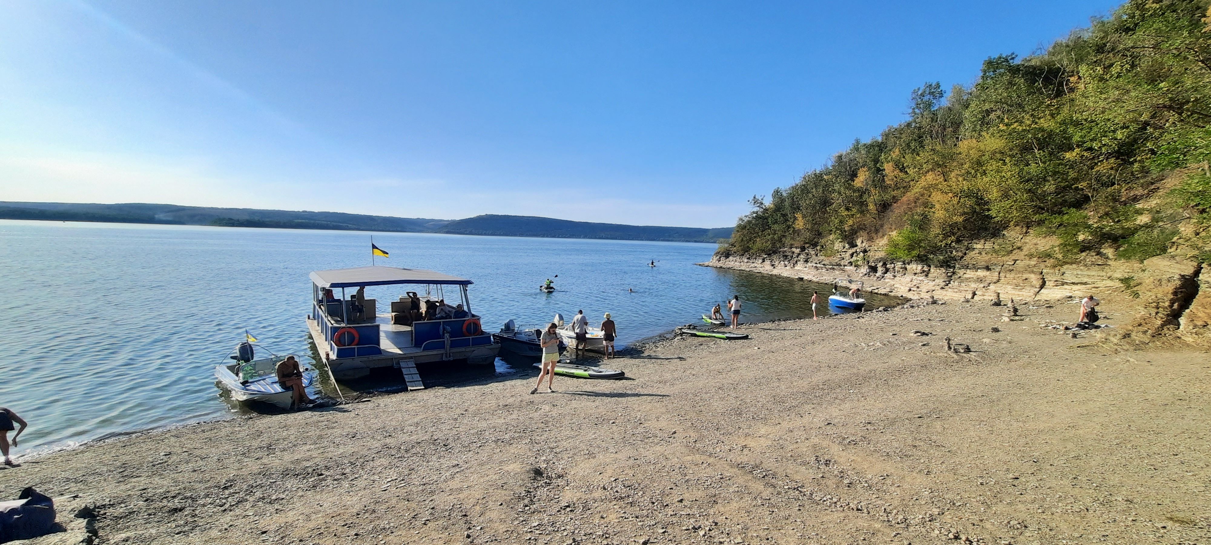 Поруч на березі Дністра вже сучасні люди облаштували пляж. Звідти ж відчалюють кораблики, на яких можна помилуватися красою водойми і місцевості.
