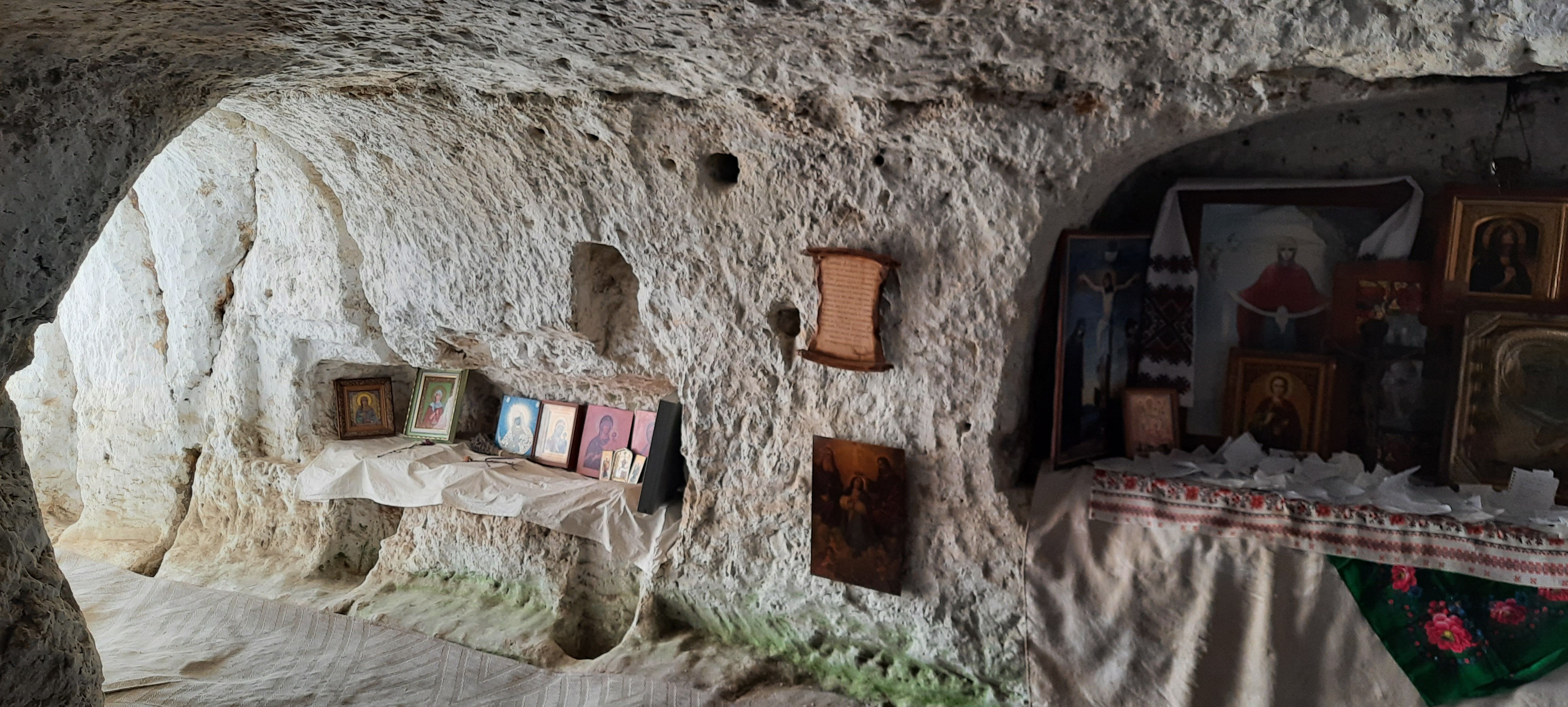 Скельний монастир існував у XII-XV ст. За легендою, заснував його чернець Антоній з Києво-Печерської Лаври. Хоча на стінах є напис: «Григорій воздвигъ мѣсто се», «Благослови Христосъ Григорія Игумена давшаго силу Святому Михаилу».