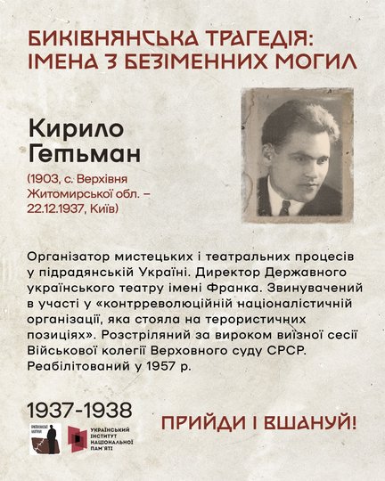 У Биківні не розстрілювали. Туди привозили хоронити тіла вже розстріляних в київських тюрмах. У лісі відбувалися масові поховання в таємних могильниках. На підтвердження цього зберігся документ 1937 року, який свідчить відведення земельної ділянки для «спецпотреб НКВС».