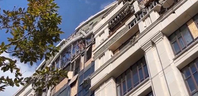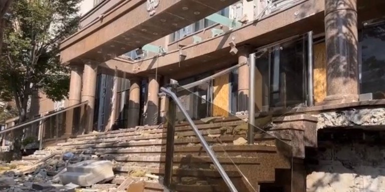 На відео видно, що у будівлях вибило вікна, подекуди відпали частини фасадів.