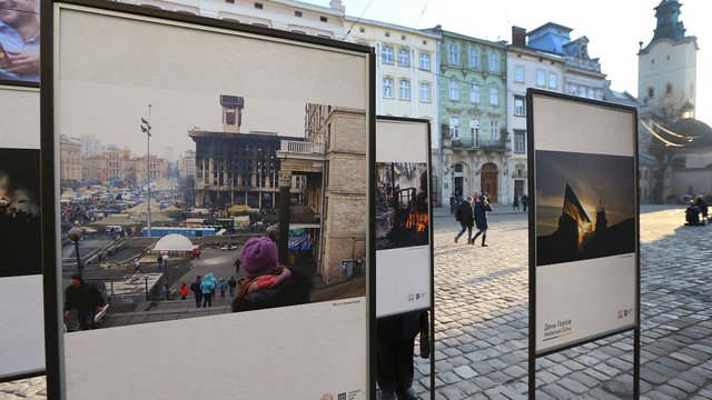 У вівторок,19 лютого, на площі Ринок у Львові відкрили виставку світлин, присвячену пам’яті Героїв Небесної Сотні. На виставці представлено роботи шістьох авторів. Оглянути виставку тематичних фото можна буде впродовж двох тижнів.
