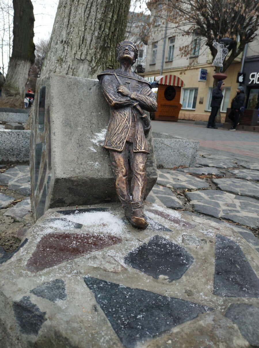 Біля найстарішої пожежної частини у Луцьку встановили міні-скульптуру кликуна