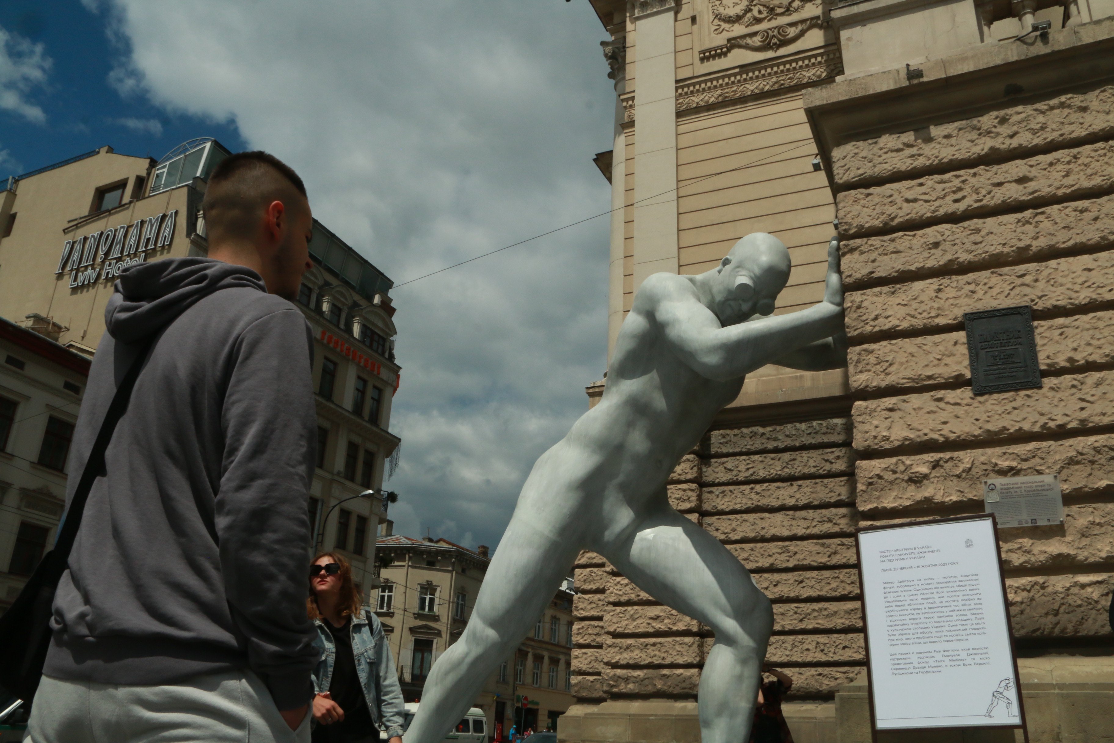 У центрі Львова біля оперного театру у середу, 28 червня, встановили скульптуру Арбітріума. Монументальна фігура чоловіка, висотою у 5,5 м символізує докладання великих фізичних зусиль. Композицію створив італійський митець Емануеле Джіаннеллі, який таким чином хотів висловити підтримку українцям у боротьбі з російською агресією. Композиція перебуватиме у Львові до 15 жовтня. Міський голова Львова Андрій Садовий зазначив, що скульптура є подарунком і на неї не витрачали гроші з бюджету.