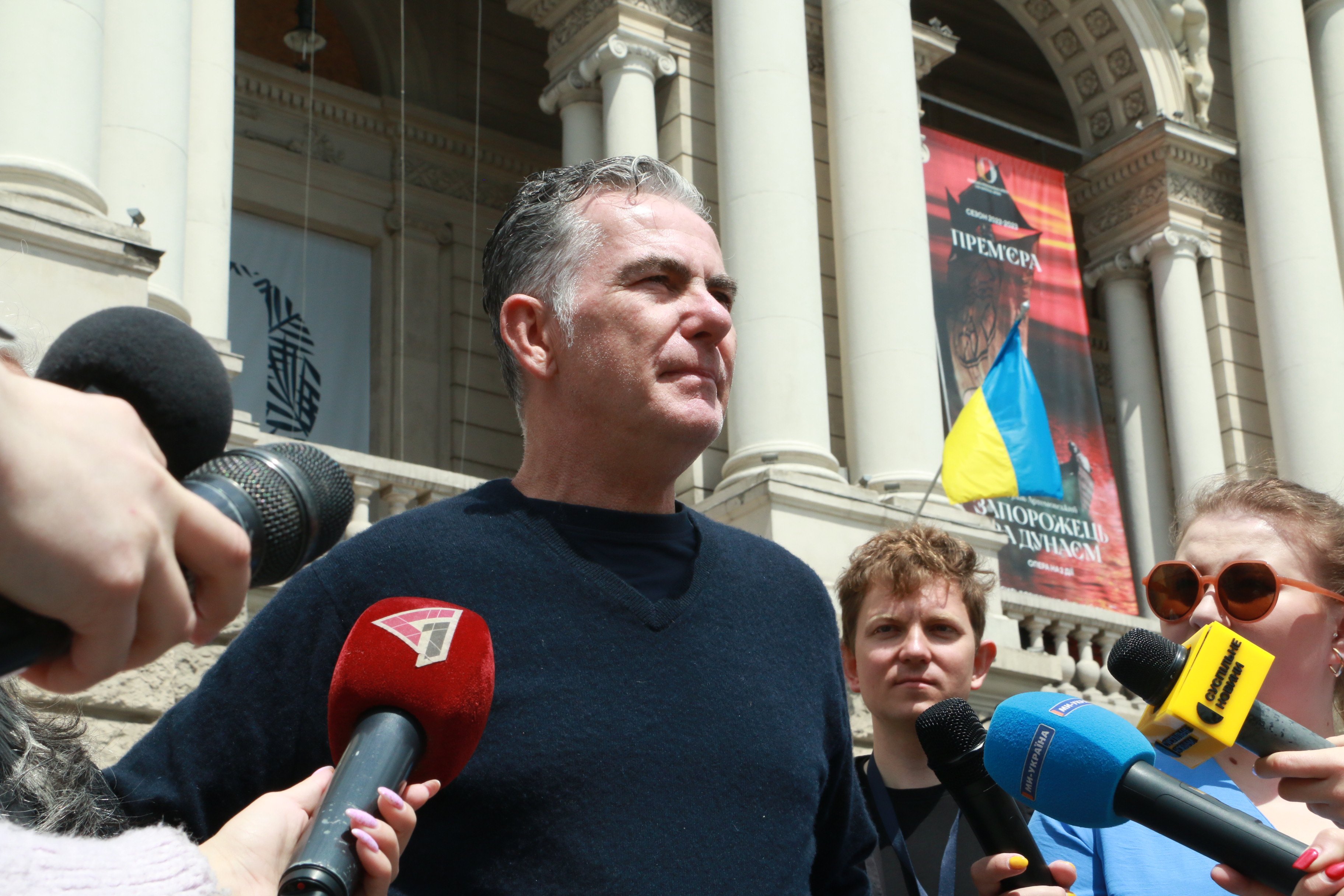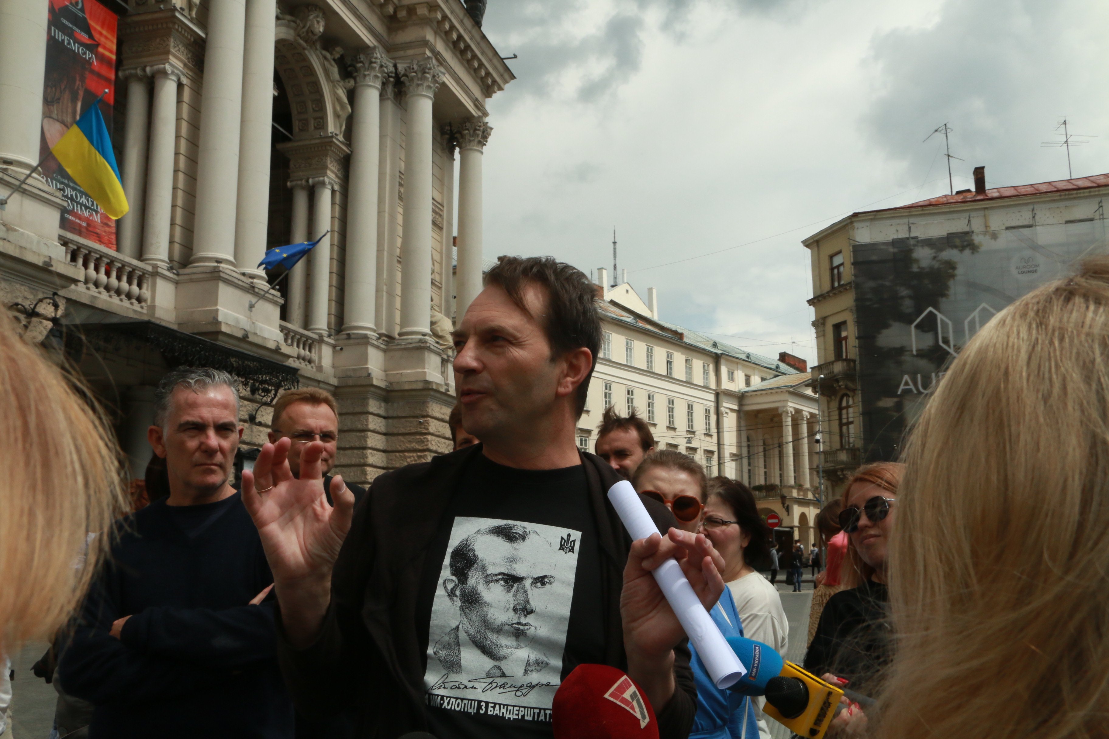 Заступник директора опери Тарас Курчик розповів, що у соцмережах львівської опери розгорнулася дискусія щодо скульптури. «Вважаємо, що це добре. У цій скульптурі закладений дуалізм – підтримувати чи штовхати. Дискусія – це добре, але немає причин для дискусій щодо підтримки. Можемо з різних ракурсів дивитися на цю скульптуру, але це підтримка», – наголосив Тарас Курчик.
