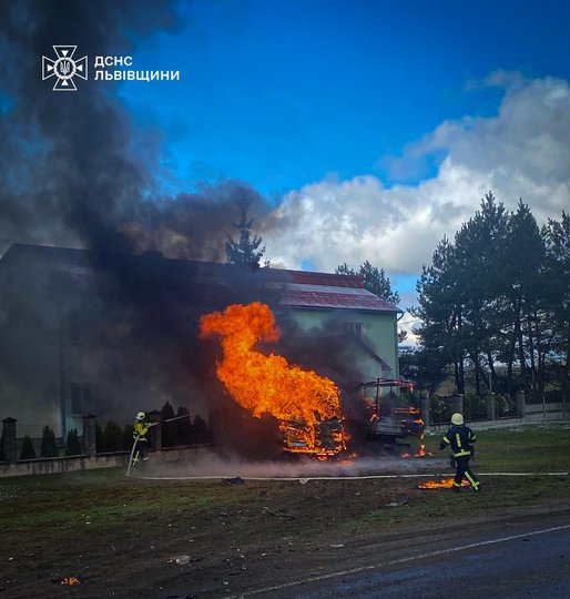 Внаслідок ДТП біля Судової Вишні вщент згорів бус, семеро потерпілих