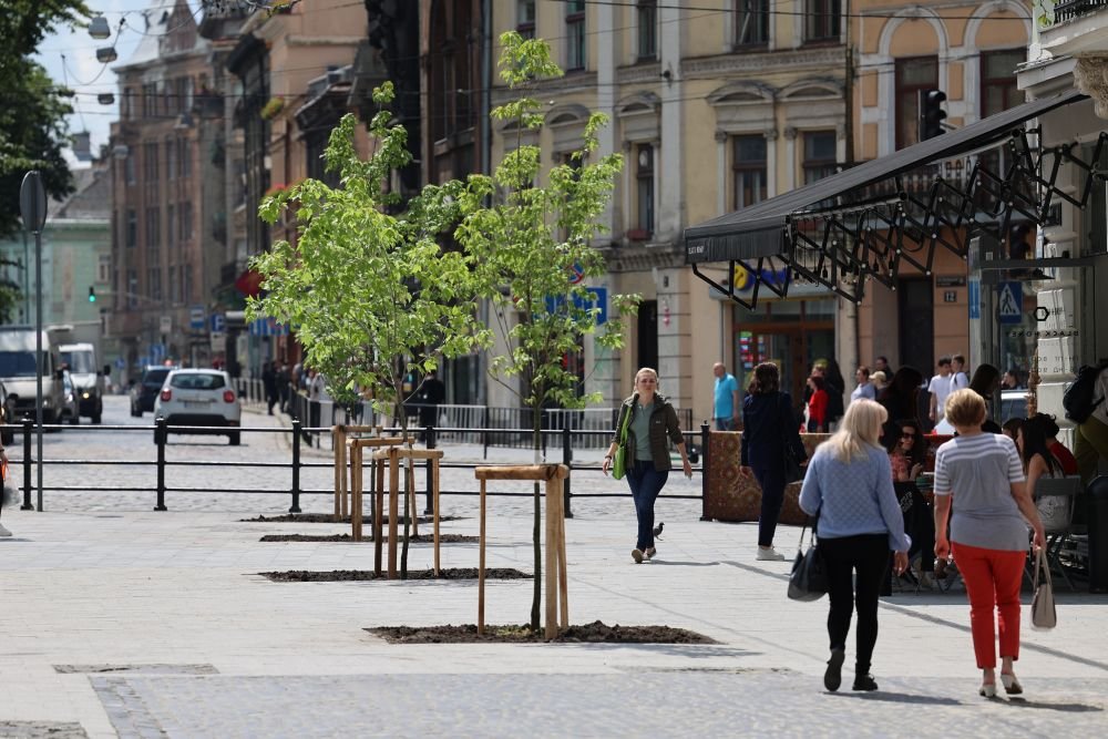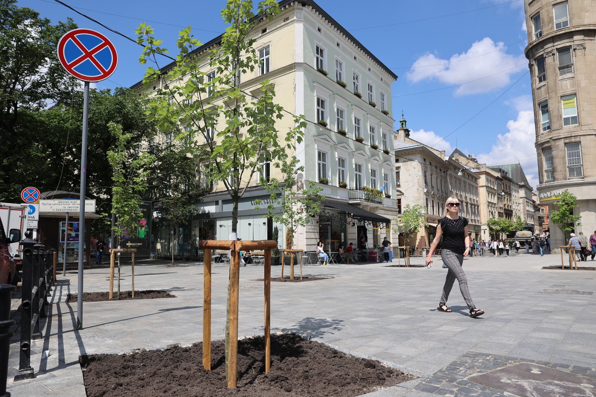 На площі Галицькій у центрі Львова висадили 6 кленів-рубрумів. Ці дерева заспонсорували благодійники, вони створюватимуть додатковий затінок у спеку.