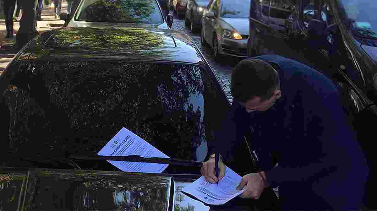 На лобове скло авто порушників кладуть два листки – один із нагадуванням про реформу сфери паркування, а інший із зазначенням конкретного порушення та передбаченого за нього штрафу.