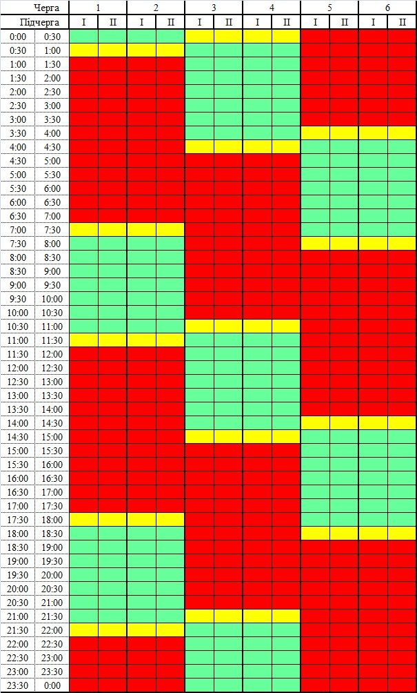 Графік відключень буде діяти 1 жовтня з 20:00. Відключення будуть одразу в чотирьох черг. Згідно з графіком, кожна черга буде три години зі світлом, і шість – без нього.