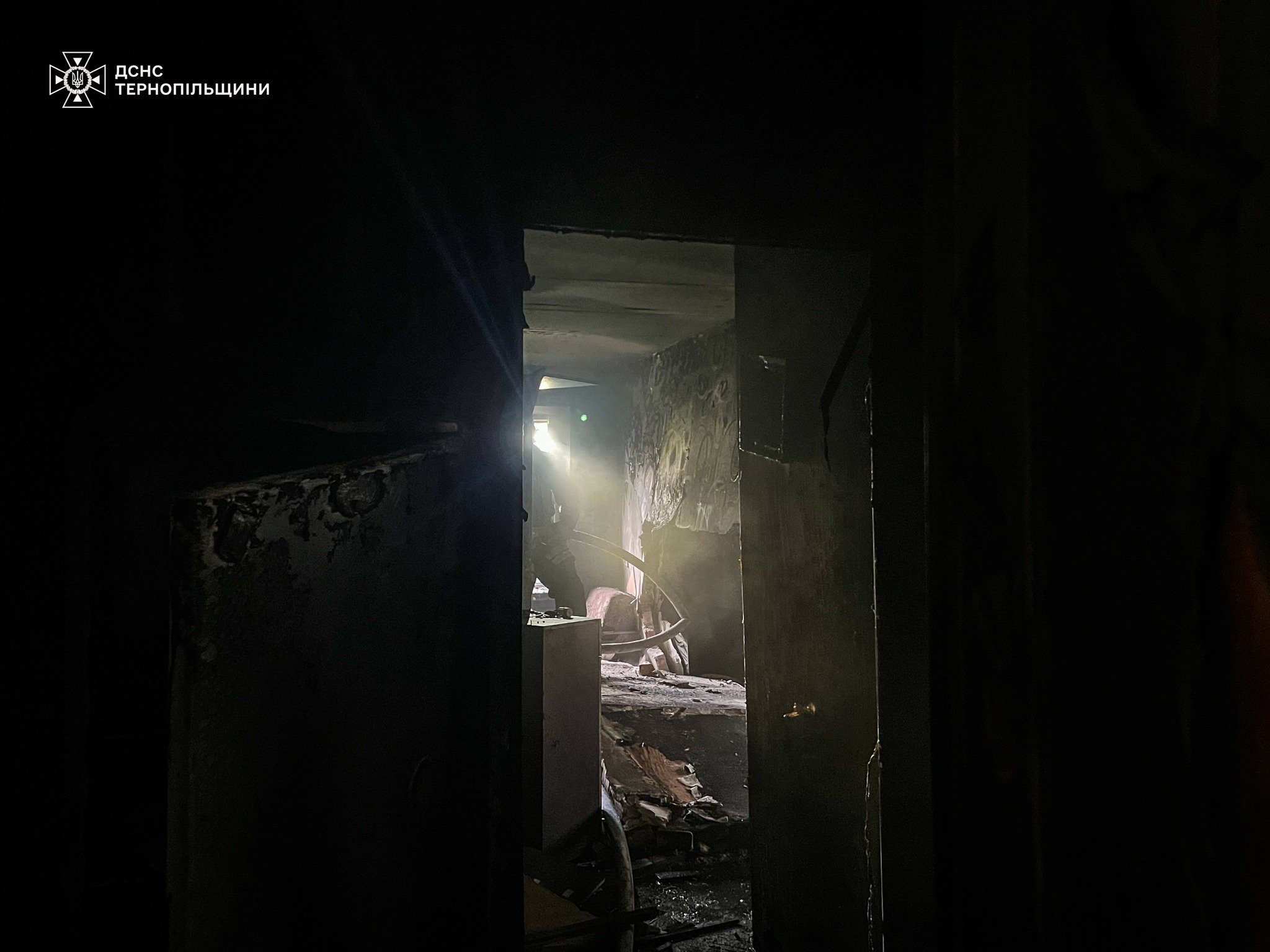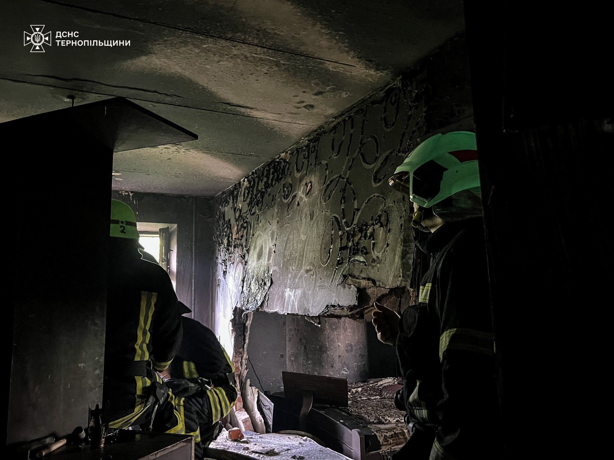 Повідомлення про вибух та пожежу від мешканців будинку на вул. Кривоноса в рятувальну службу надійшло близько 19:00. Люди повідомили, що горить помешкання на 4 поверсі, а вогонь миттєво почав поширюватися, повідомили в ДСНС Тернопільщини.