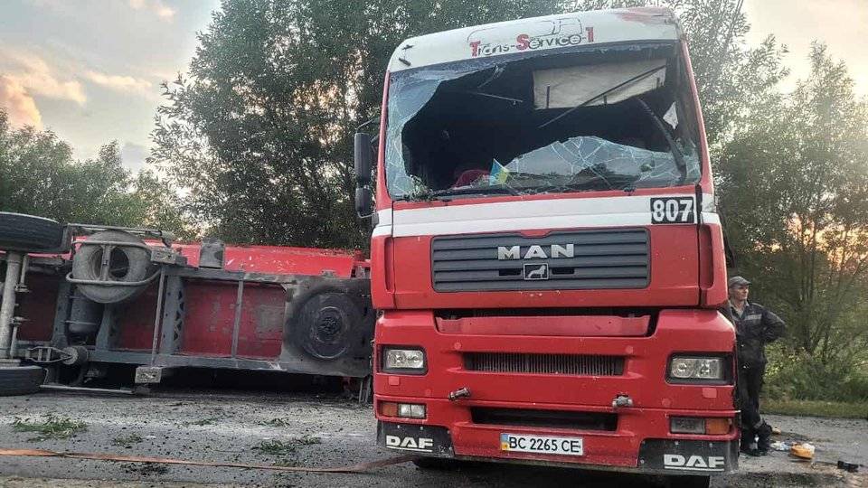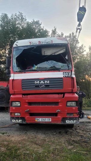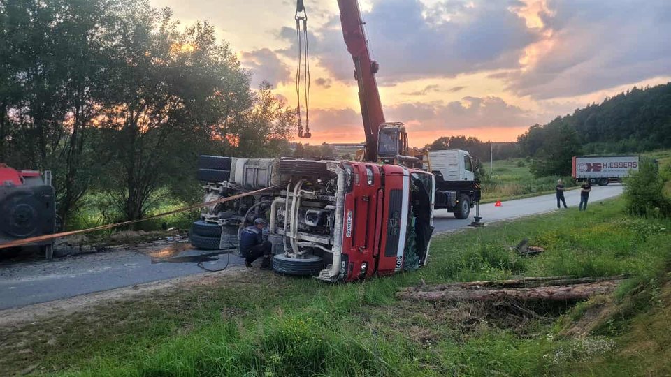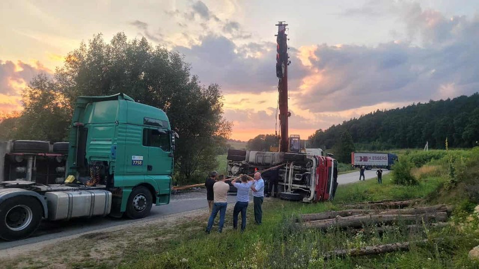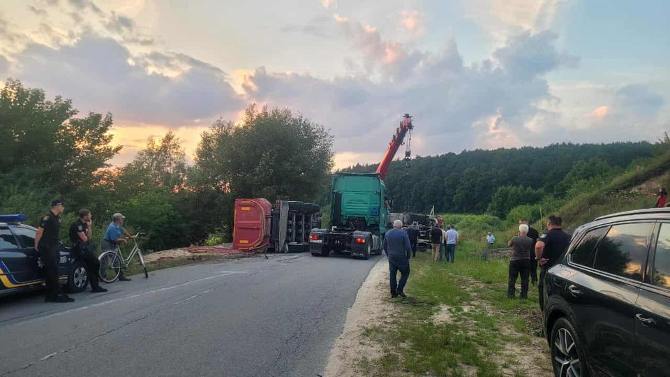 За даними поліції Львівщини, 21 липня близько 17:00 водій DAF з напівпричепом, рухаючись у напрямку міста Пустомити, не впорався з керуванням, внаслідок чого вантажівка перекинулася. У результаті результаті ДТП 63-річного водія, мешканця Львова, госпіталізували в лікарню.