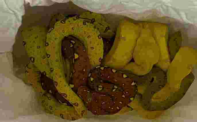 «Під час перевірки у пункті пропуску «Порубне» митники в салоні мікроавтобуса виявили подірявлену для циркуляції повітря коробку. У ній, як з’ясувалося, були екзотичні рептилії у тканинних мішечках. Жодних документів для перевезення тварин у водія та пасажира автівки не було. Вони повідомили, що коробку везуть як передачу в Італію», – йдеться в повідомленні прикордонників.