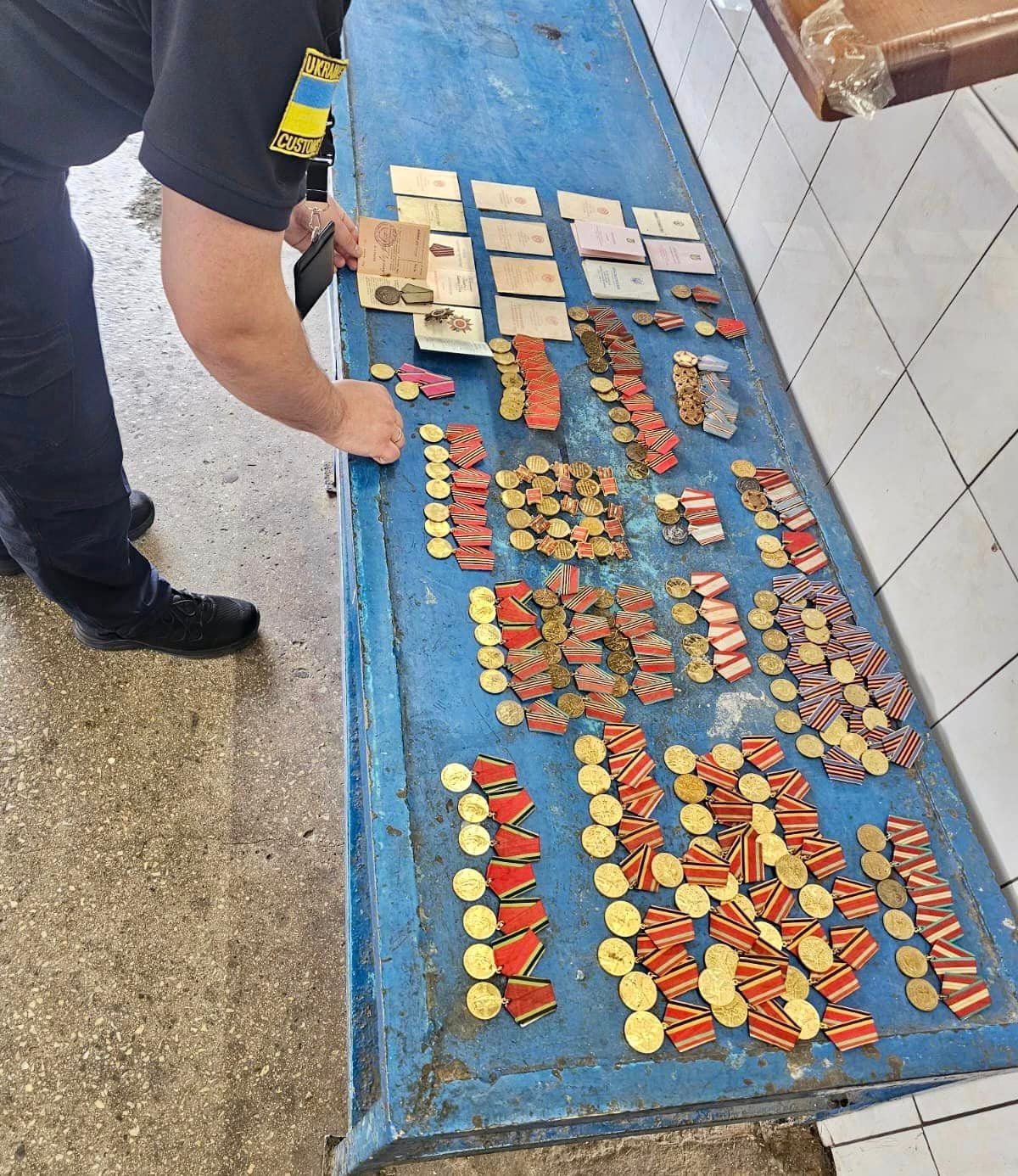 «Однак, під час додаткового огляду автобуса та особистих речей працівники митниці виявили не заявлені та не вказані в митній декларації предмети: орденський знак, ювілейні медалі, орденська книжка, посвідчення, свідоцтва до медалей загальною кількістю 239 штук», – повідомили в Чернівецькій митниці в понеділок, 20 травня.