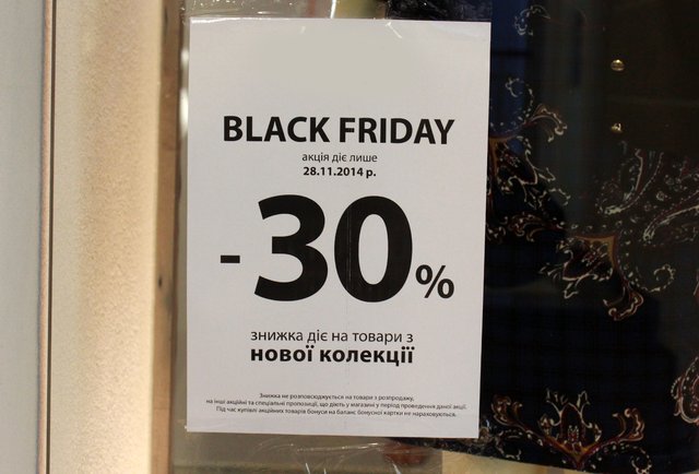 0У Львові 28 листопада деякі магазини вирішили долучитись до «чорної п’ятниці» – розпродажу товарів – приєднавшись до щорічної практики американських та європейських торгових мереж, які в останню п'ятницю листопада відкривають сезон різдвяних розпродажів. У цей день магазини США роблять знижки аж до 90%.