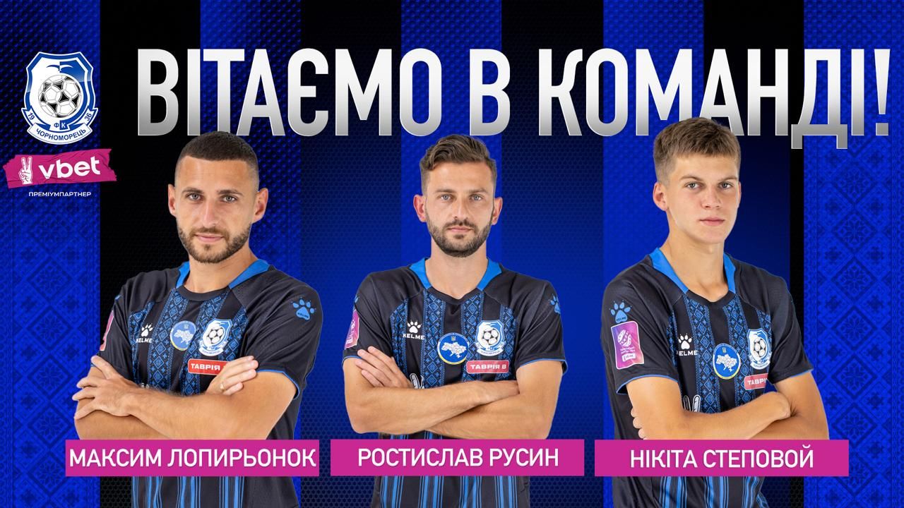 «Чорноморець» на своєму офіційному сайті повідомив про підписання шістьох новачків. Новобранцями команди Олександра Кучера стали захисники Ростислав Русин і Микита Степовий, півзахисники Олександр Скляр та Максим Лопирьонок, а також форварди Владислав Кулач і Євгеній Рязанцев. Терміни та умови угод не розголошуються.