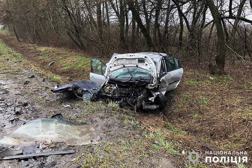 Неподалік Хмельницького внаслідок зіткнення двох автомобілів постраждали четверо людей. Троє з них перебували у Audi, у якого внаслідок ДТП фактично повністю розтрощена передня частина. Чи є серед них потерпілі у важкому стані, наразі невідомо.