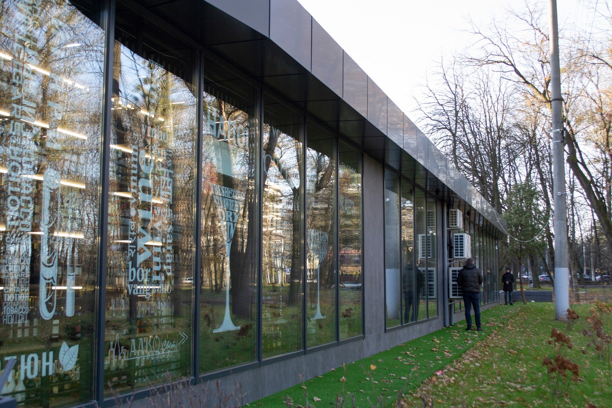 До реконструкції вхід у перехід був закритим, а над ним був невеликий прозорий навіс. Під час перебудови об’єми скляної конструкції збільшили приблизно вдвічі, а також змінили форму самої конструкції. Вже за рік на цьому місці відкрили два повноцінні торгові ряди: у першому зі сторони корпусу заводу відкрили заклади харчування і квітковий магазин, а навпроти – алкомаркет та магазин із вейпами. Скляні павільйони розташовані на тротуарі, впритул до проїжджої частини, та відгороджені від дороги невисоким парканом. Крім цього, будь-які входи в підземний перехід всередині МАФу відсутні.