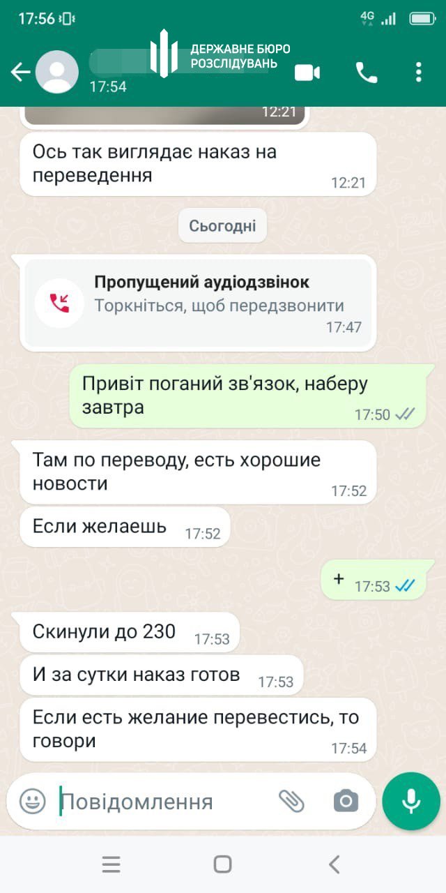 Крім того, ДБР оголосило підозри чотирьом військовим, які за хабарі перевелися на службу у тил. Загалом, за даними слідчих, незаконною послугою могли скористатись 150 військових.