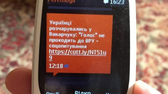 Прес-служба поліції опублікувала скріншот одного з дискредитаційних SMS, які розсилав депутат сільради. У повідомленні було посилання на новину з сайту «Еспресо» про опитування КМІСу і текст: «Українці розчарувались у Вакарчуку: «Голос» не проходить до ВРУ».