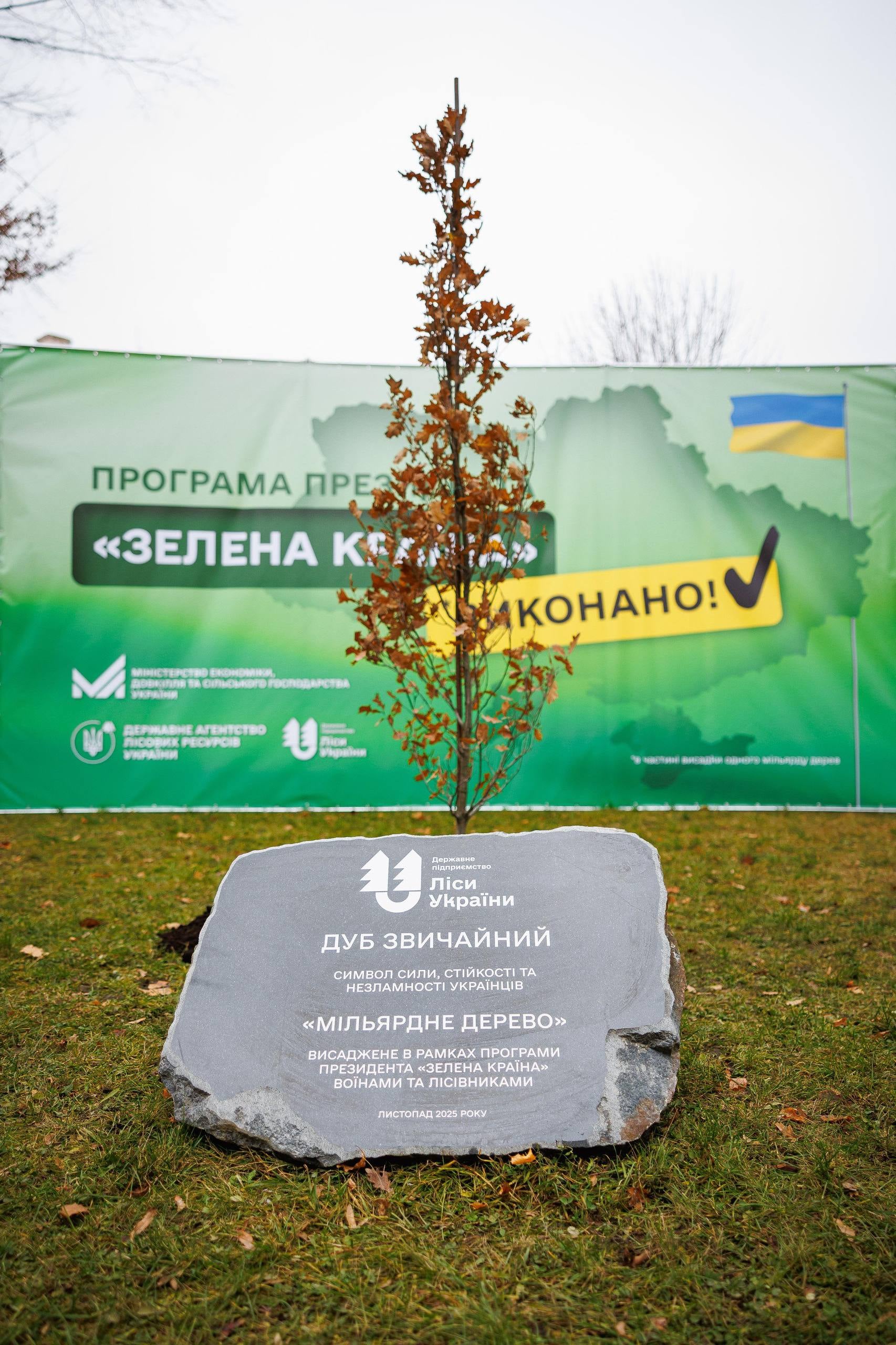 Генеральний директор ДП «Ліси України» Юрій Болоховець розповів, що символічним мільярдним деревом обрали дуб як «символ стійкості та незламності українського народу».