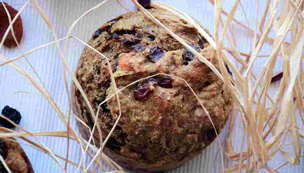 Додати борошно, олію (10 ложок). Тісто за консистенцією вийде густе, як на пісочне печиво. Додати родзинки /журавлину (якщо використовувати).