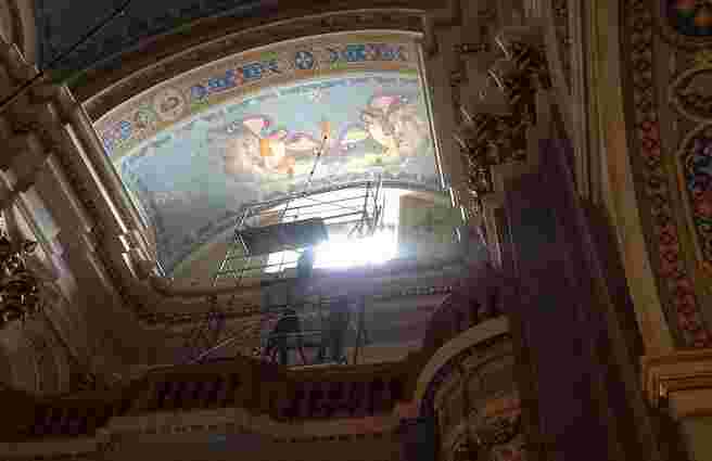 «Роботи з реставрації вітражу ми розпочали ще в кінці вересня. Ми зробили дві рами: додаткову захисну з прозорим склом, а іншу – безпосередньо з вітражем. Ми вже демонтували старе скло та раму, завтра монтуємо вітраж, який розміщуватиметься на висоті 25-30 метрів. Завершити монтажні роботи плануємо до Великодня», ― розповів реставратор Юрій Миколаїшин.
