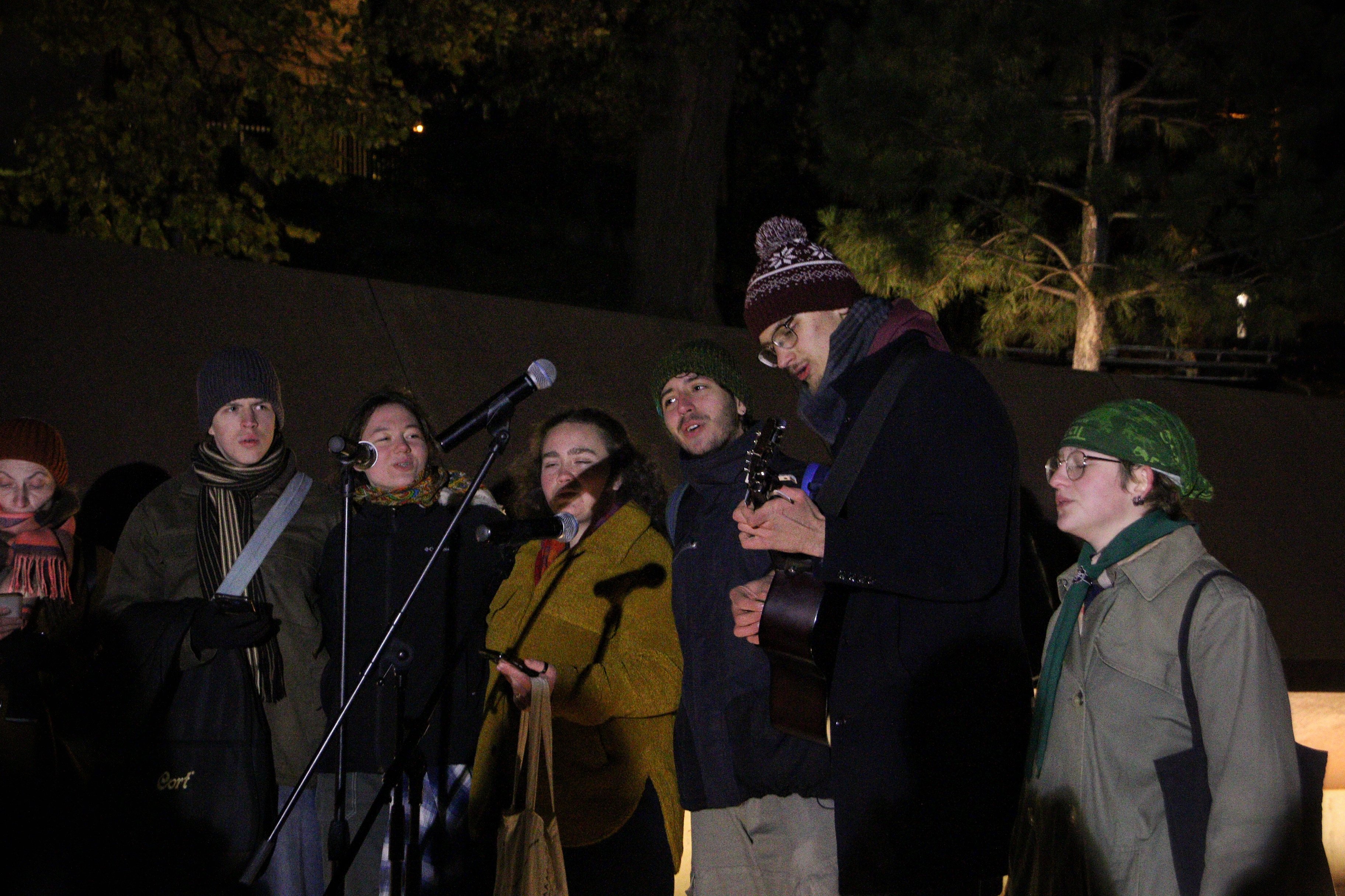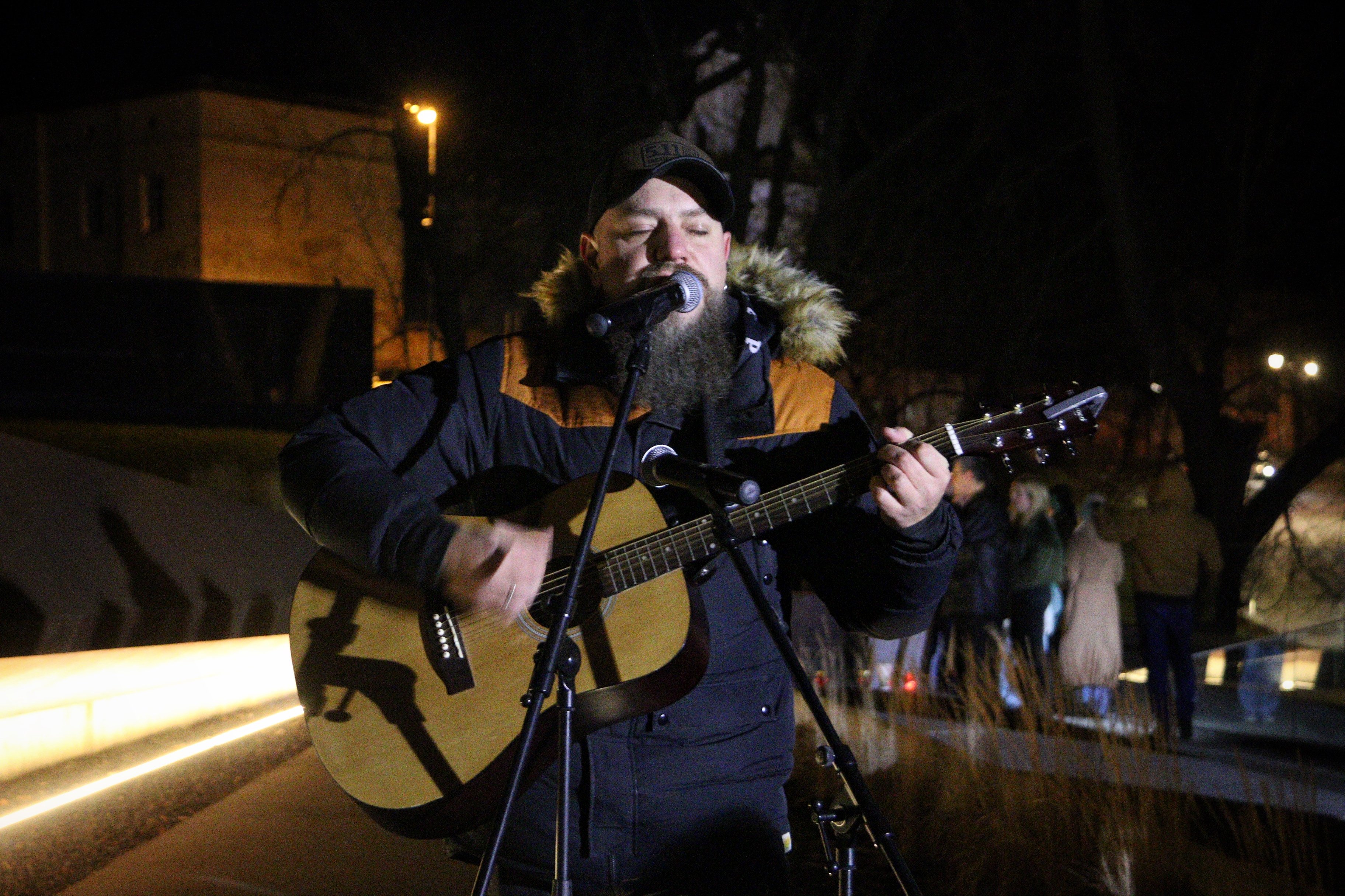 Захід розпочався з короткої молитви. Після цього присутні співали під гітару українські стрілецькі та повстанські пісні. Зокрема, на меморіалі Небесної Сотні виступив ветеран, музикант та керівник Центру допомоги захисникам Андрій Жолоб.