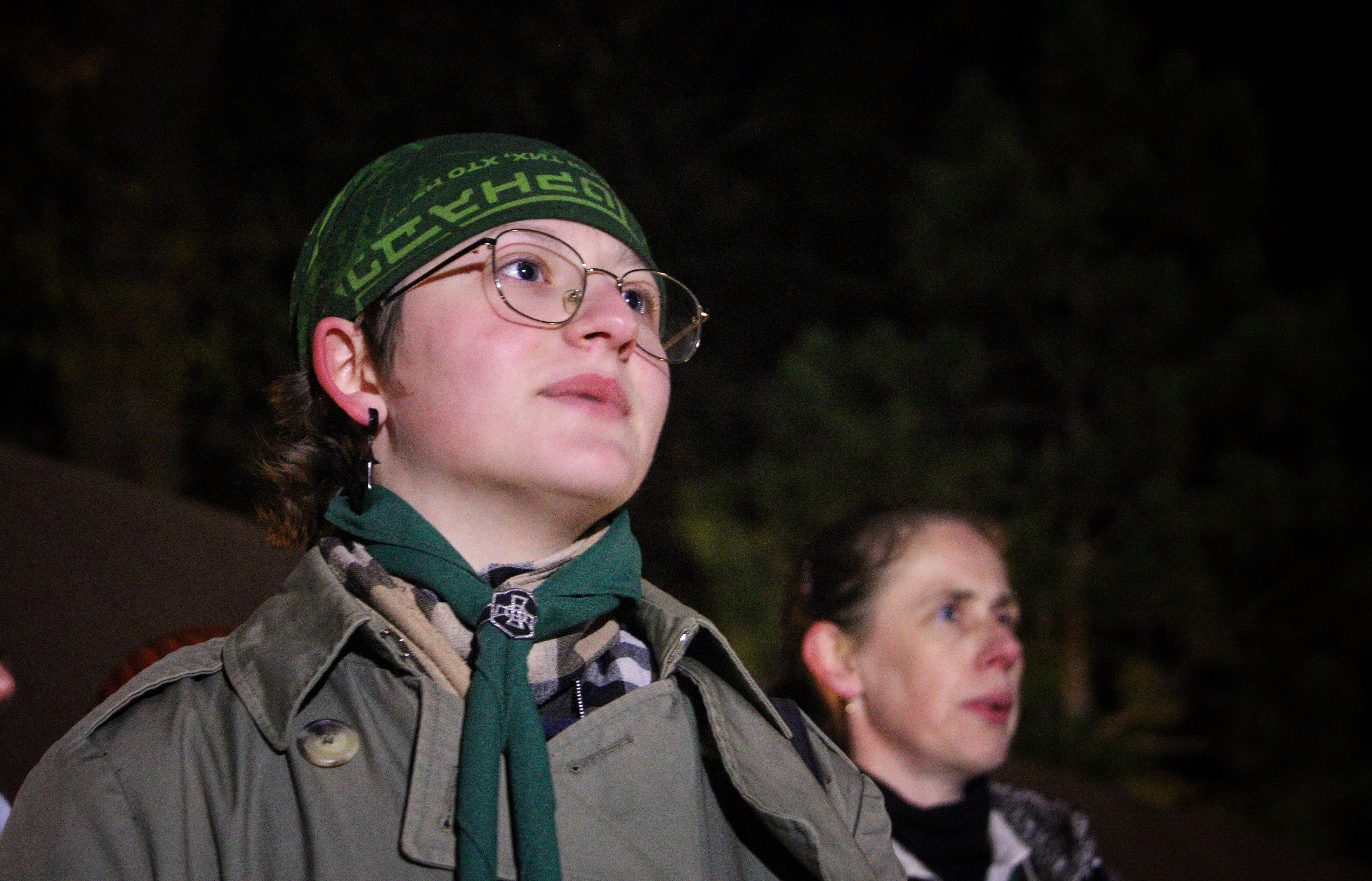 «Під час Революції Гідності я була дитиною, але якраз 2014 року приєдналася до "Пласту". Я пам'ятаю, що було дуже страшно, хоч не була на Майдані й завжди жила у Львові. Напевно, у мене досі є цей страх, бо щоденно втрачаємо рідних і друзів, загинули багато пластунів. У цьому страху народжується наша свобода й гідність. Сьогодні на ватрі було багато історичних пісень, про різні етапи нашої боротьби. У них завжди є лінія про свободу та гідність. Маємо стояти за своє, щоб бути гідними тих, хто загинув за те, щоб ми могли продовжувати тут жити», – розповіла у коментарі ZAXID.NET голова львівського осередку «Пласту», 21-річна Дарина Доскач.