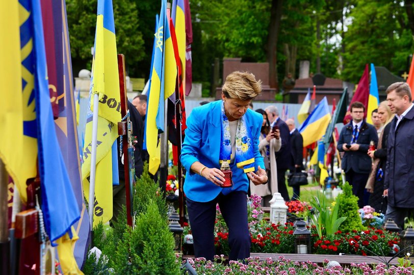Насамперед іноземні та українські делегації відвідали Личаківське кладовище, щоб віддати шану героям, які поклали життя за свободу України.