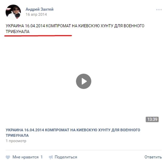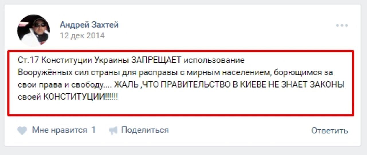 Скріншоти записів Захтея у соціальних мережах Facebook і Вконтакте. Фото «Миротворець»