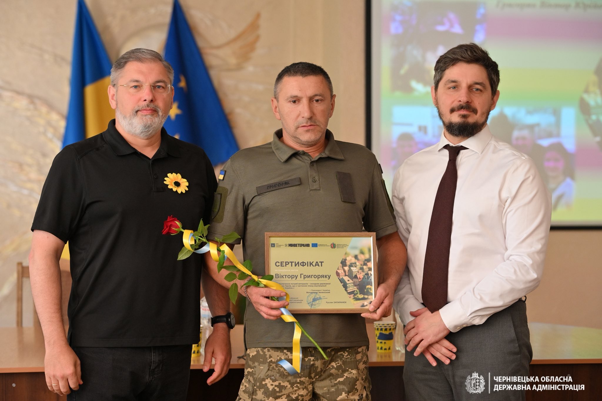 У Чернівцях двадцятьом ветеранам і членам їхніх родин вручили 20 сертифікатів на житло на загальну суму 45 млн грн. Це сертифікати лише на виділення частини грошей, необхідних для придбання квартири або ж будинку. Вручення відбулося в п’ятницю, 29 серпня, в Чернівецькій обласній військовій адміністрації.