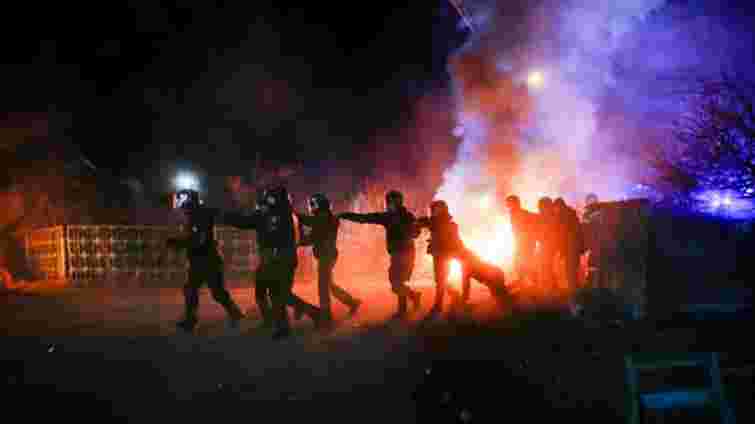 Коли автобуси з евакуйованими прибули в Нові Санжари, між протестувальниками і правоохоронцями почалися сутички: частина людей кидала каміння в автобуси.