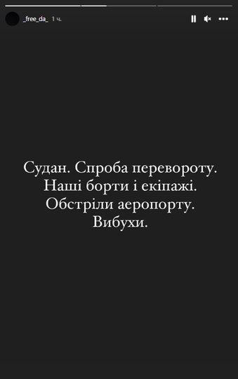 «Судан. Спроба перевороту. Обстріли в аеропорту. Заручники. Наші екіпажі і борти. Молимось», – повідомила вона додавши, що не може розповісти більше через питання безпеки.