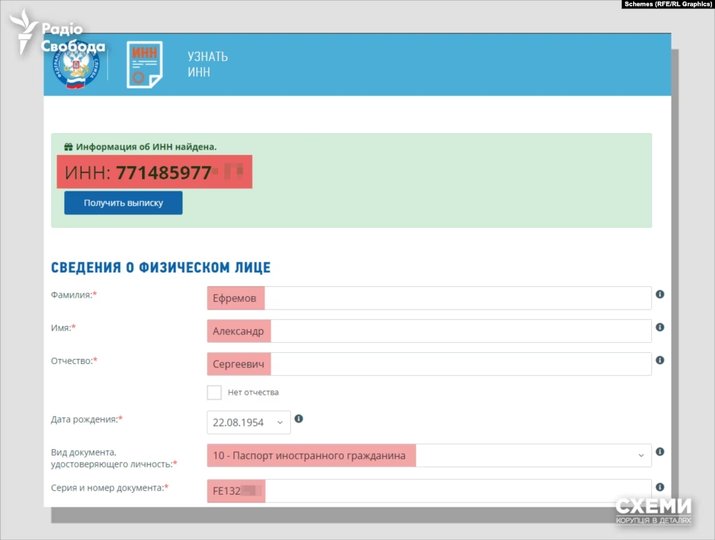 «Таким чином сумарна вартість знайденої журналістами московської нерухомості родини Єфремових становить понад 4 мільйони доларів (або понад 150 млн грн).Окремо, за допомогою офіційного сайту Федеральної податкової служби РФ, “Схеми” з’ясували, що ексдепутат має російський індивідуальний податковий номер. Органи РФ його обліковують у прив’язці до українського закордонного паспорта Єфремова», – повідомили журналісти.
