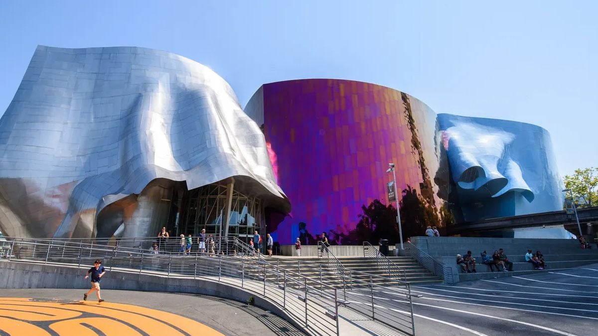 Ця масивна конструкція виглядає так, ніби тане під палючим сонцем Сіетла, але це далеко не так. Ця конструкція, покрита листовим металом, була натхненна рок-музикою та енергією, яку вона втілює. Гері навіть зізнався, що підготовка включала купівлю та складання гітарних деталей, щоб створити форму, яка надихне майбутній музей попкультури.