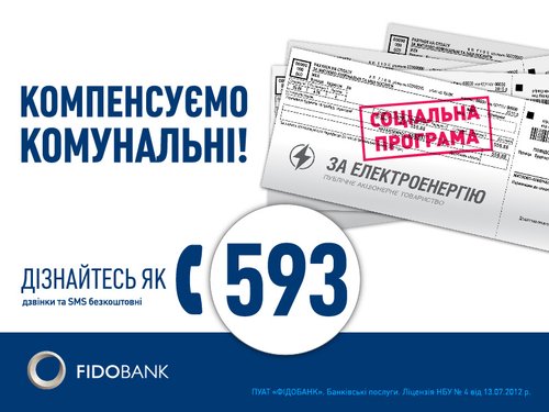 Фідобанк розпочав компенсацію перших комунальних платежів своїм вкладникам в рамках власної соціальної програми. Компенсаційні виплатина суму до 1200 грн на оплату комунальних послуг отримали клієнти, які розмістили свої заощадженняв банку після старту програми 23 січня 2015 року. За умовами програми,Фідобанк сплачує комунальні послуги за один місяць щоквартально протягом строку розміщення депозиту на додаток до базового процентного доходу.