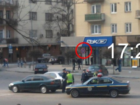 Іванофранківець Дмитро Мельникович вивісив у групі на Фейсбуці фотографії, на яких видно, як в центрі Івано-Франківська, біля посту ДАІ під знаком "Зупинка заборонена" водії влаштували собі парковку.