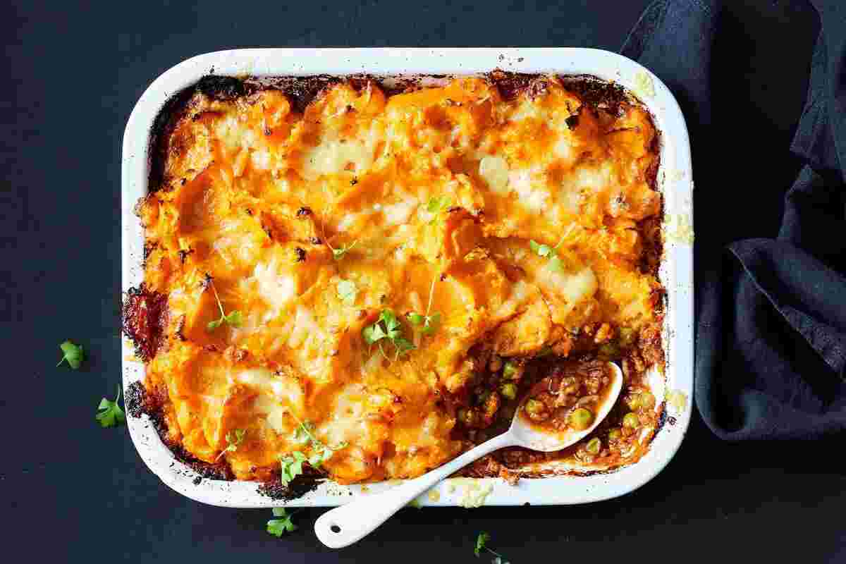 Викласти фарш. Зверху – картопляно-гарбузове пюре. Запікати 15-20 хвилин. Якщо у духовці є режим конвекції, випікати саме на ньому, щоб утворилась гарна скоринка.