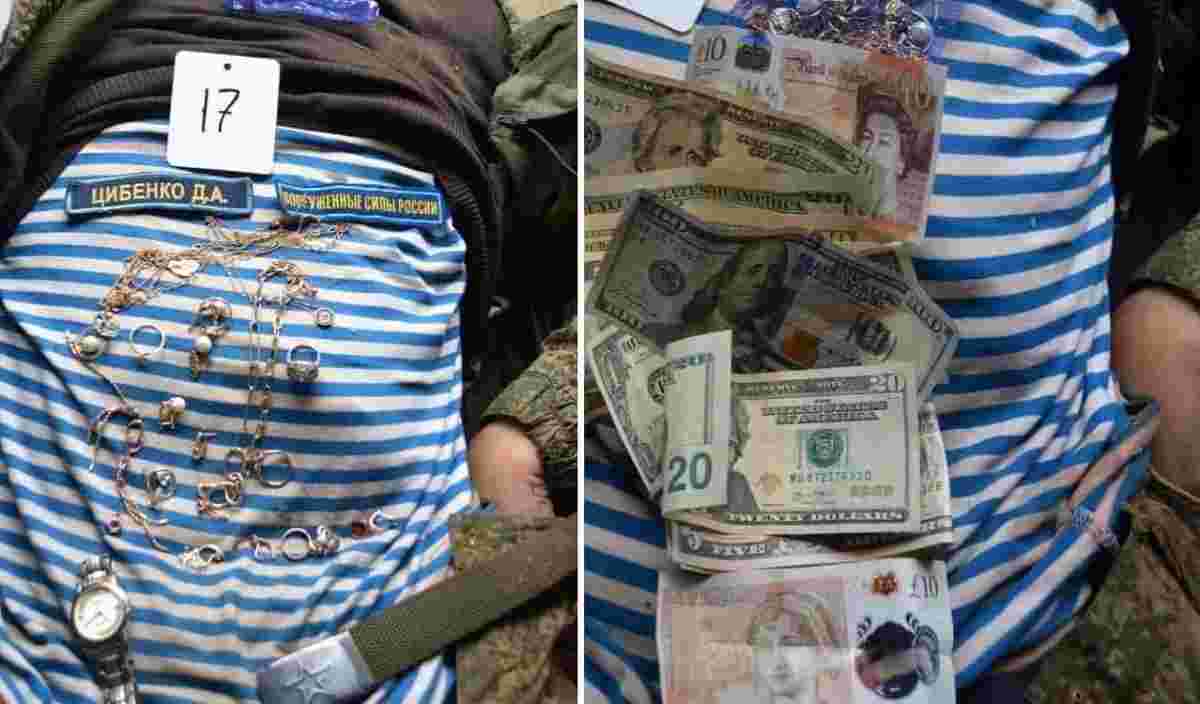 Російські військові займаються мародерством та крадіжками в Україні. Так у одного з вбитих окупантів знайшли гроші та велику кількість награбованих ювелірних виробів.